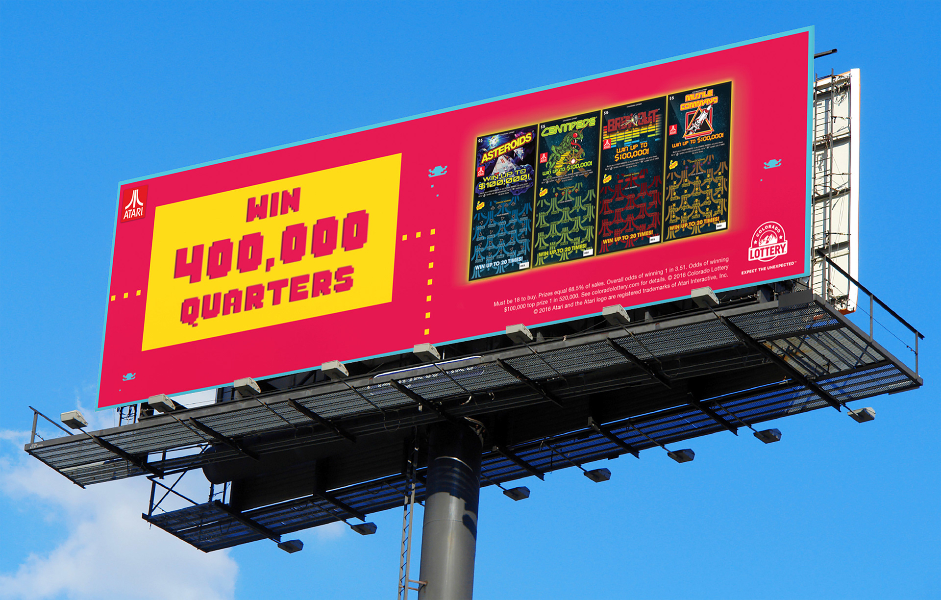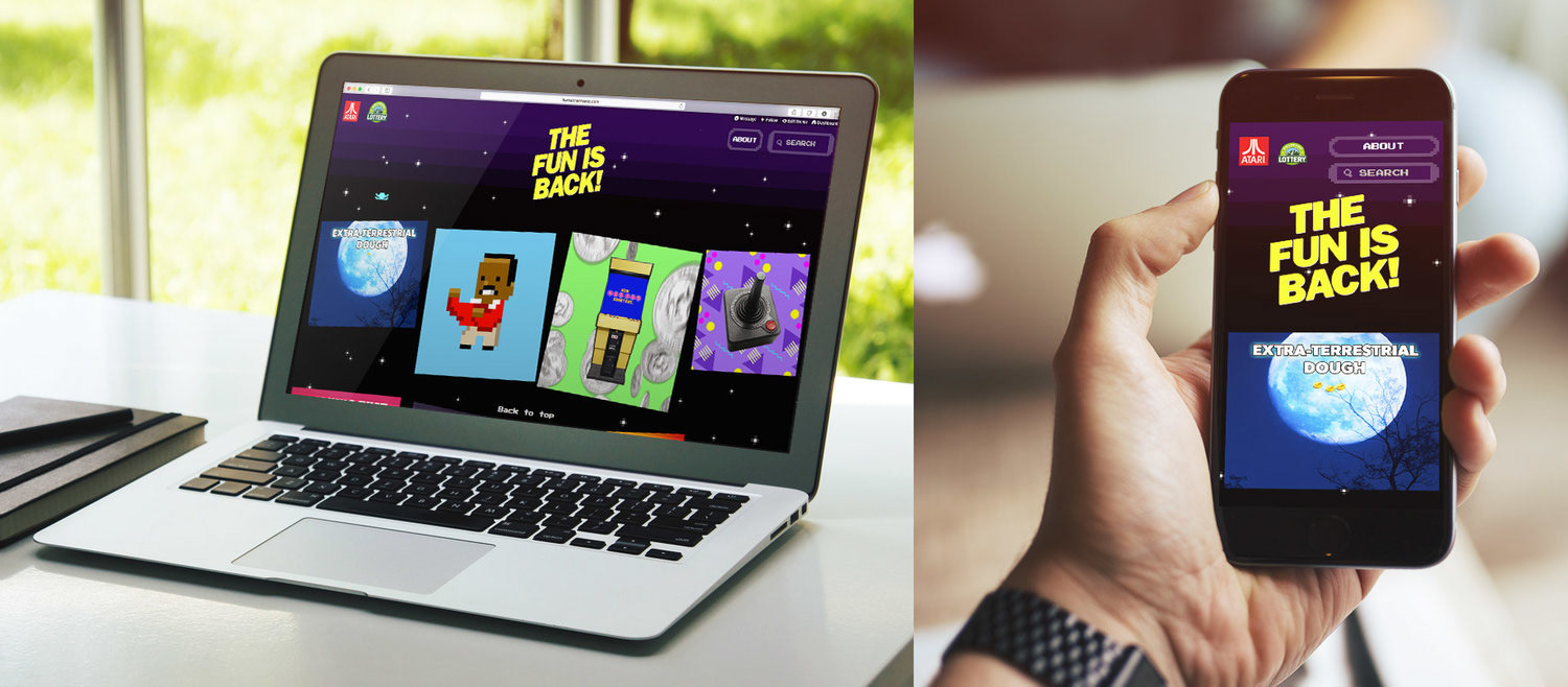 For this throwback scratch game, we created a throwback commercial that spoofs an old Atari spot, OOH boards, and radical gifs for giphy.